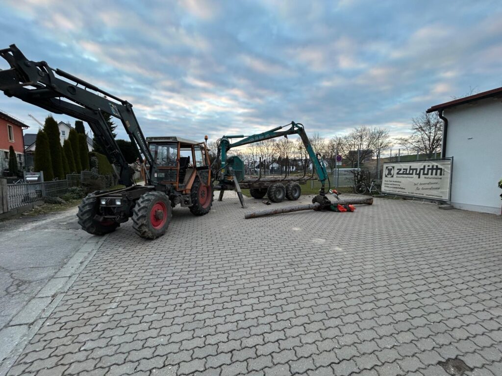 Geübt wurde der Umgang mit einem Gespann bestehend aus einem Traktor und einem Rückewagen mit Ladekran.